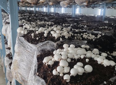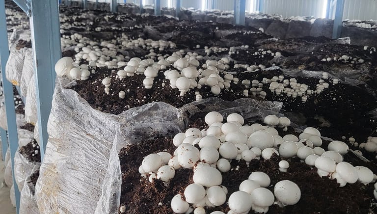 Cultivating button mushrooms with locally sourced, high-quality ingredients.